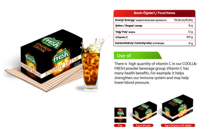 The powder beverage is a powder that designed to be mixed, to produce a beverage usually with water. It's very practical preparation and unique taste, leave a taste in the mouth. You can enjoy COOLL&FRESH powdered beverage at any time of the day.